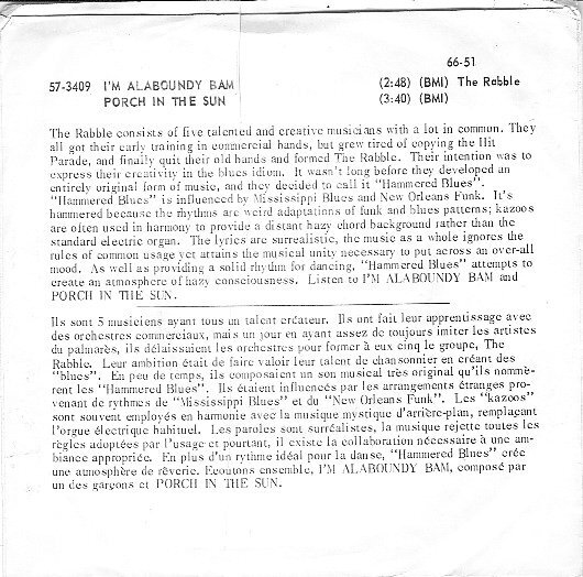 Rabble - I'm Alaboundy Bam b/w Porch in the Sun (picture sleeve)
