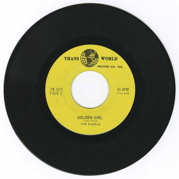 After their first single, the oddly titled psych rocker 'I'm Alaboundy Bam', failed to see much chart action, the three along with drummer Brian Robillard set out to record what would become one of the great lost singles of the 1960s...in any country. Once inside the studio, the four wasted little time, and Pimm's fetching ode to romantic love, 'Golden Girl', was ready in a matter of minutes. "In the half-day session we actually spent 28 minutes in total recording both sides of the single, 14 minutes on the live instrumental beds, and 14 minutes overdubbing the vocals. The rest of the session was spent miking the drums, adjusting levels, etc. And that was our biggest single!"