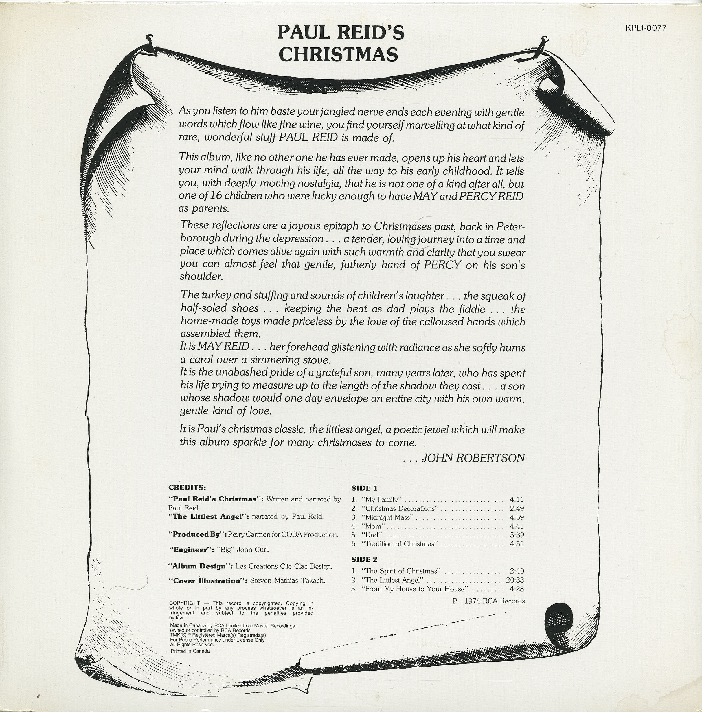 Over the years, I have received countless, calls, letters and e-mails from people all over North America, saying how much they and their families have been touched by the show and how they finish writing their cards, doing their Christmas baking or wrapping gifts to it. It has been a part of a Christmas tradition in thousands of families and remains Paul’s most enduring legacy.