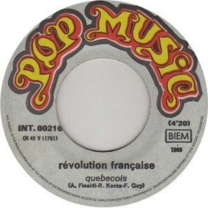 La Révolution Française - Québecois b/w Shoo-Do-Be-Do (picture sleeve)