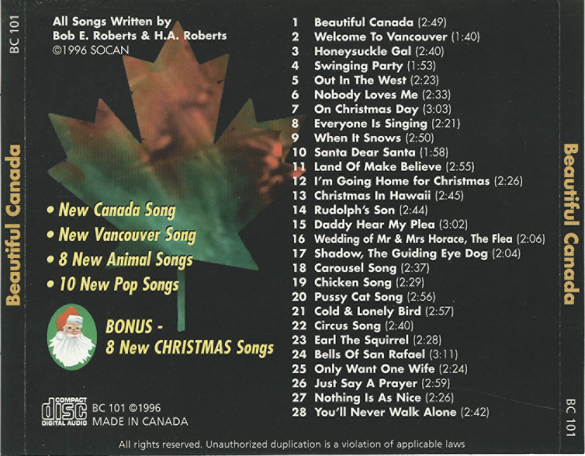 Bob and Helen hope you enjoy this collection of their songs, entitled "Beautiful Canada".
