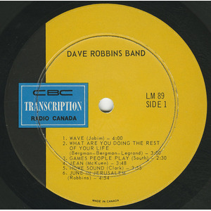 As Robbins’ CBC projects grew in scope, he moved toward full big-band recordings. In 1967 his orchestra backed singer Miles Ramsay on CBC LM-34, balancing popular repertoire with jazz charts, while in 1970 he led The Dave Robbins Band (CBC LM-89), which included his signature piece “Ripple Rock” alongside contemporary selections. These CBC projects, issued in limited runs for broadcast and educational use, are now seen as essential documents of West Coast Canadian jazz. They not only chart Robbins’ progression from small-group experimentation to ambitious big-band modernism, but also demonstrate his role as a unifying force among Vancouver’s finest musicians.