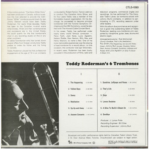 Roderman was also active as a member of several notable Canadian studio ensembles including Rob McConnell and the Boss Brass, Johnny Burt Trombones, The Johnny Burt Society, and Howard Cable and the Highway Eleven, further cementing his place in Canada’s jazz and light music legacy. Throughout his career he was credited under several variations of his name, including Ted Roderman, Teddy Roderman Orchestra, and Teddy Roderman’s 6 Trombones.