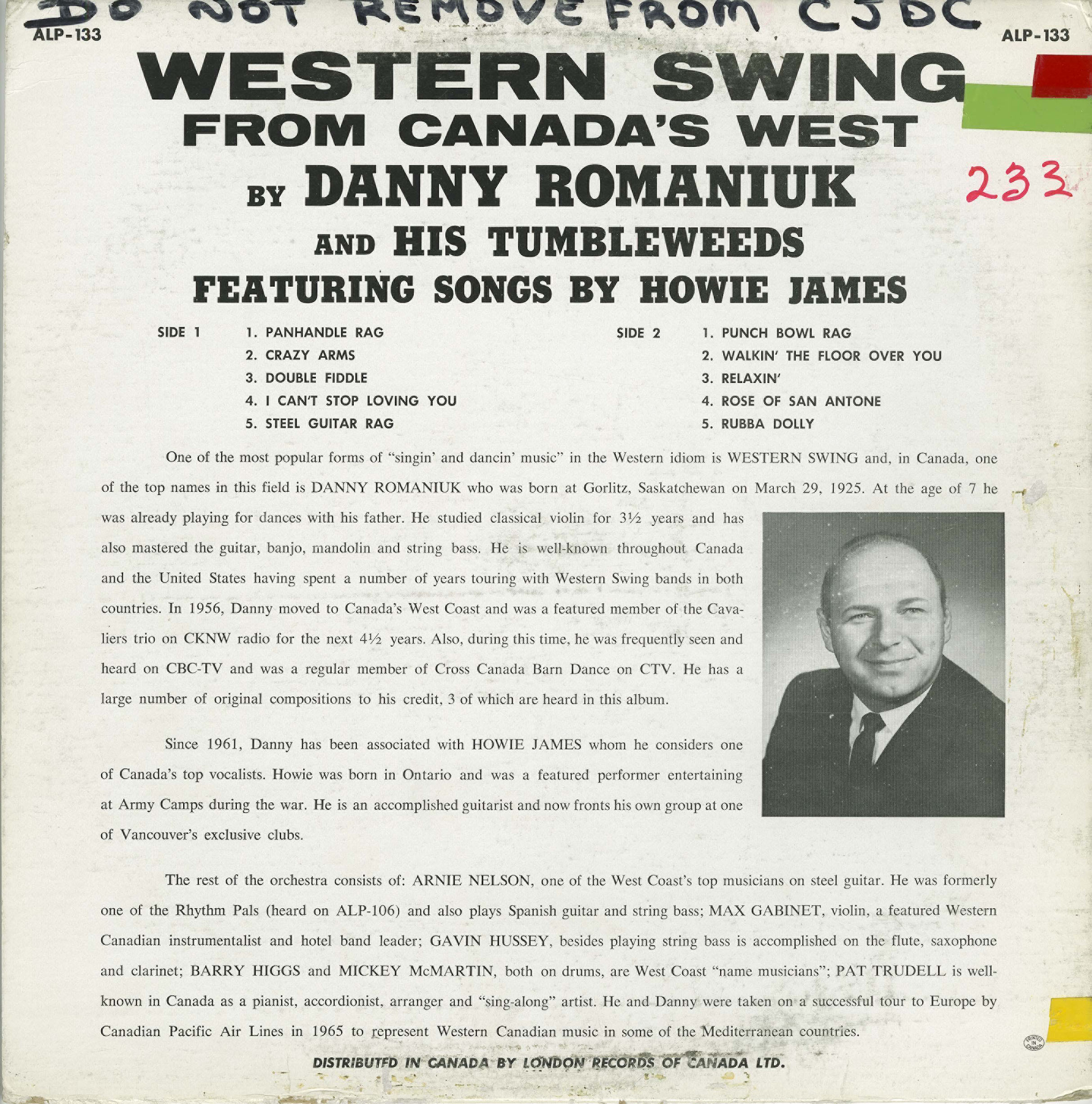 Romaniuk, Danny and His Tumbleweeds featuring Songs by Howie James - Western Swing From Canada's West