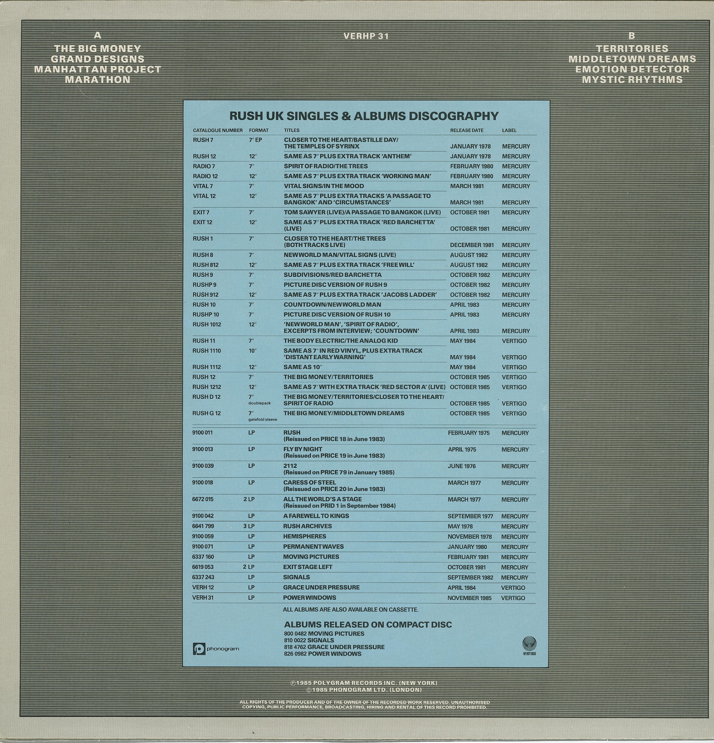 Rush – Power Windows PIC DISC FRONT WITH DISC 02