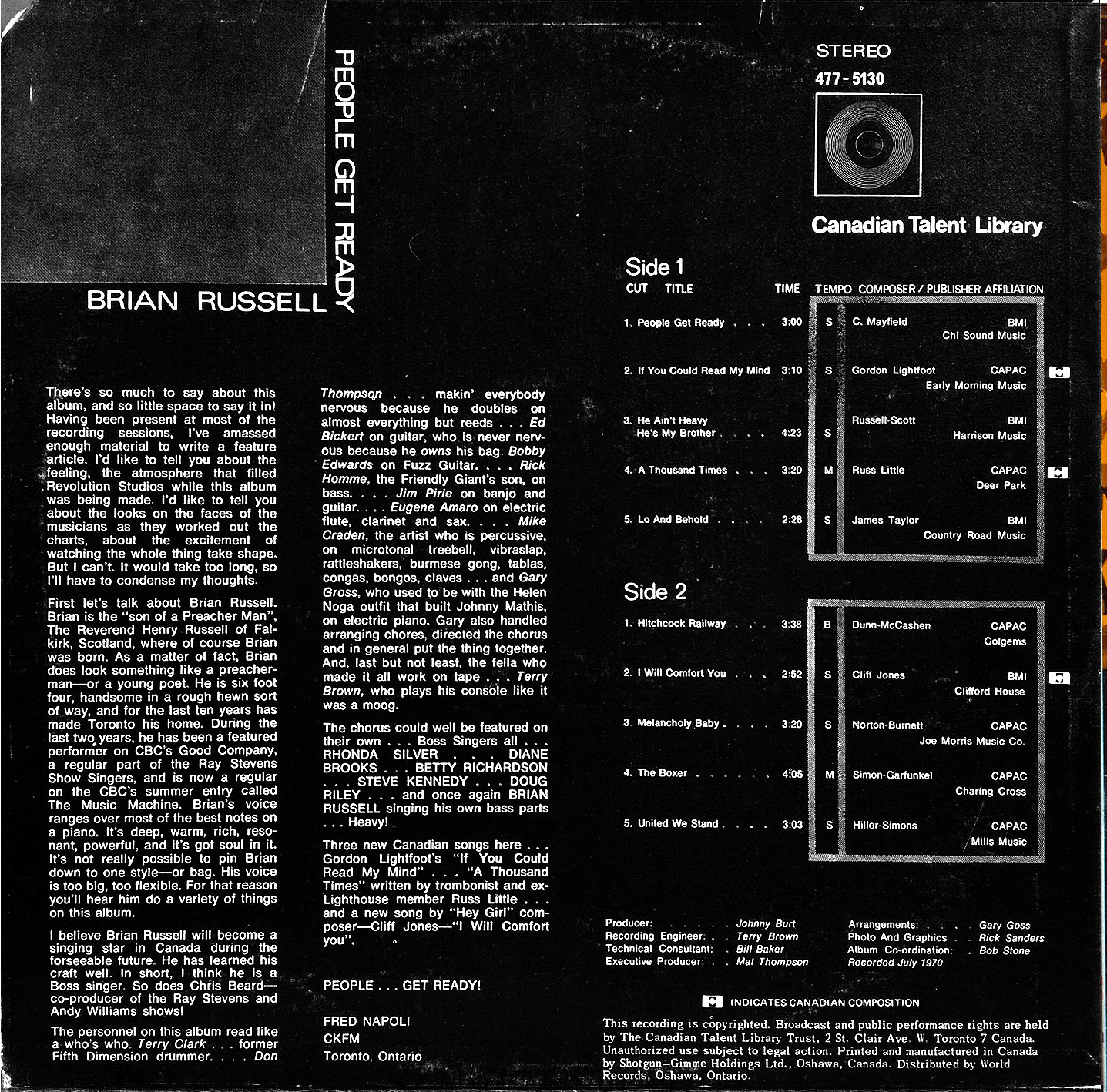 -liner notes by Fred Napoli (CKFM radio)