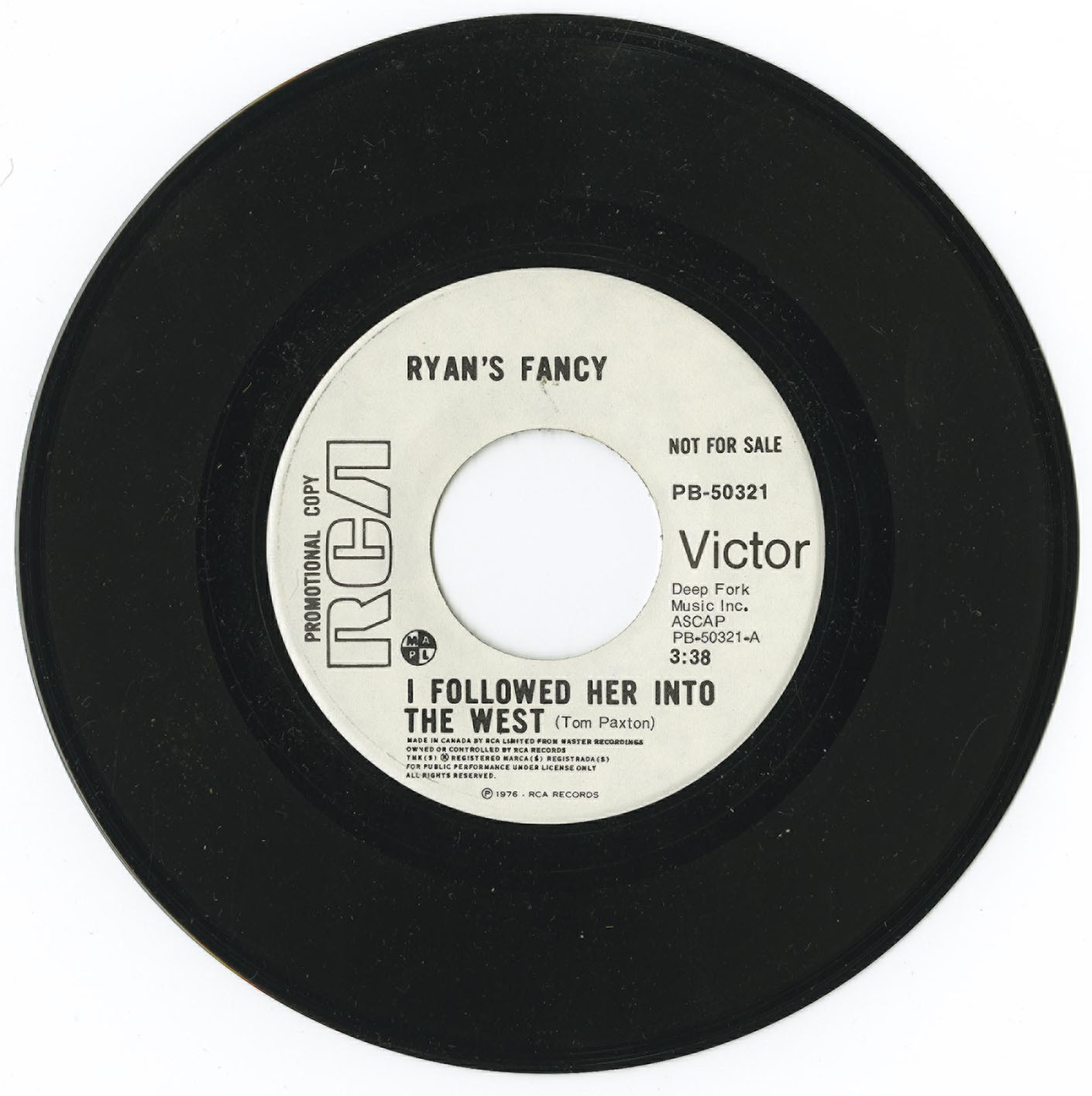 Ryan's Fancy - I Followed Her Into the West b/w Reels (promo)