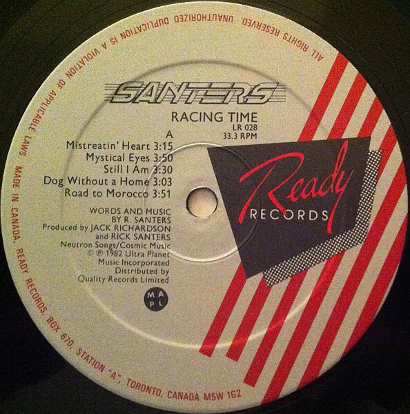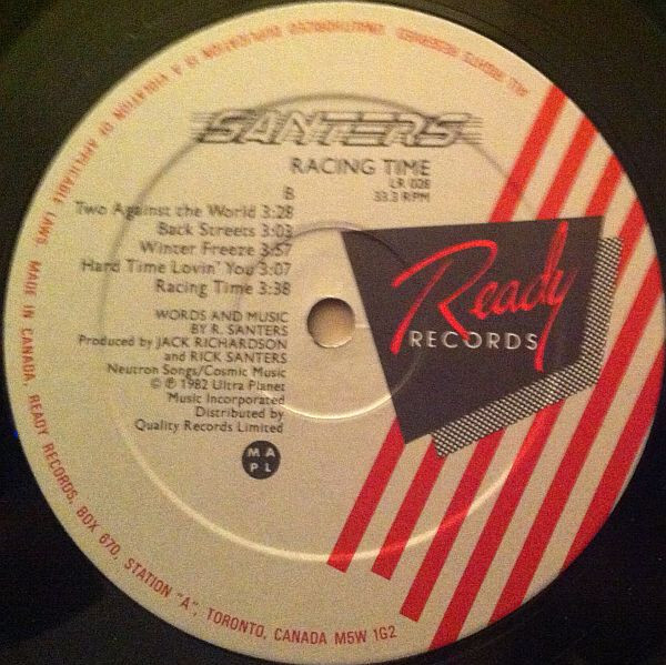 Phase One recording studios in Scarborough Ontario became the location where SANTERS would record album number two. As with the Shot Down In Flames album the Racing Time sessions were recorded on 24 track Studer A80 machine on 2” tape, through a Neve console.
