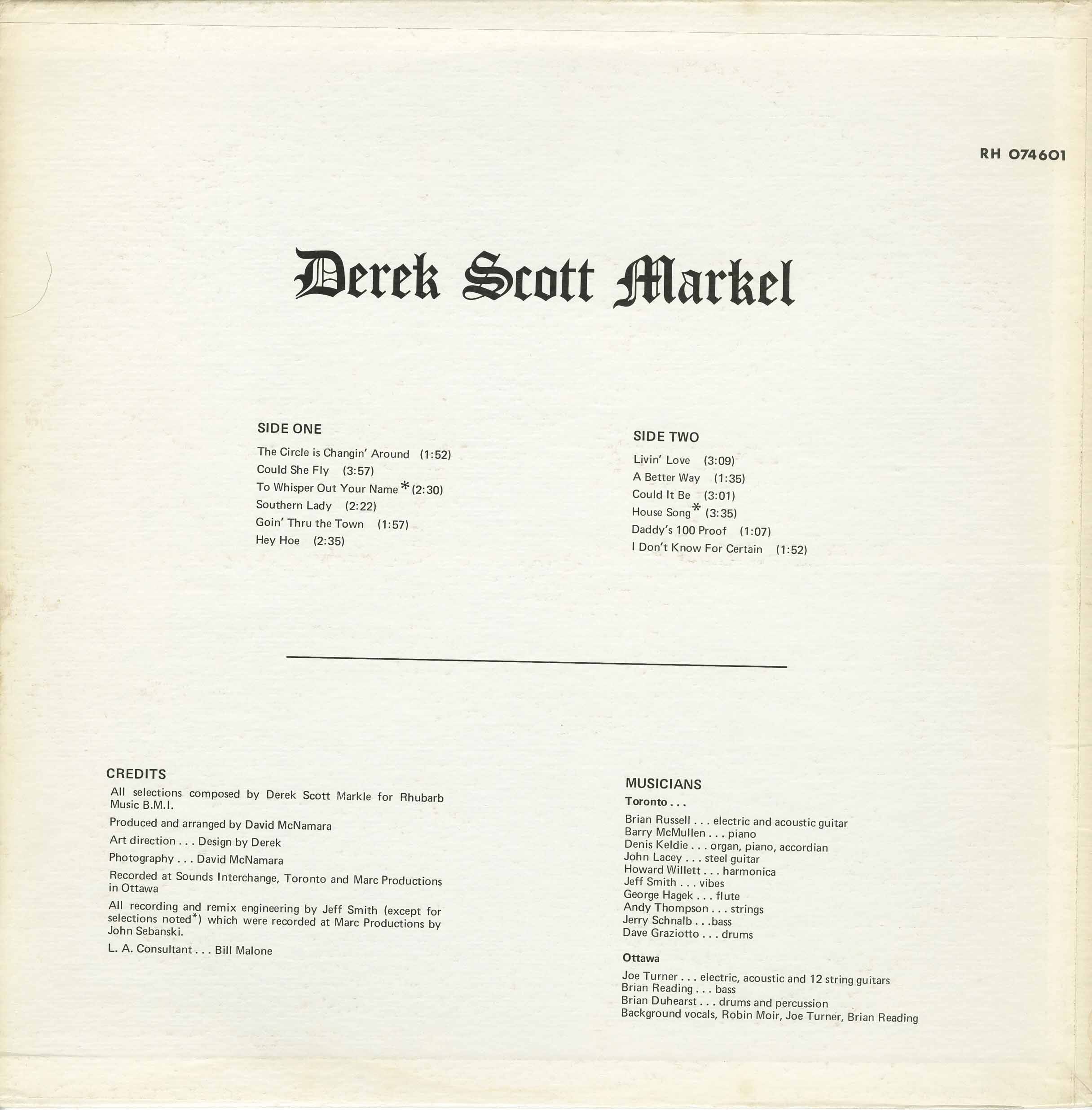 Derek Scott Markel's first album, containing 12 original compositions. The first side is more in the rural singer-song-writer folk composition vein. The second side has a bit more varying styles ranging from the folkish to folk-psych ("House Song") and blues ("I Don't Know for Certain").