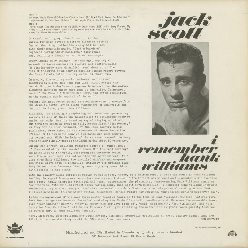 Scott, Jack (Giovanni Scafone Jr.) - I Remember Hank Williams