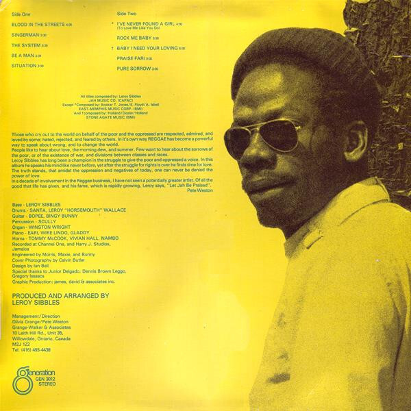 Little examination of Jamaican popular music is necessary to reveal the creativity of Leroy Sibbles. The charismatic singer, bass player, arranger, and songwriter is best known for his work as lead vocalist of The Heptones, but a closer look at his session career reveals an enormous contribution to the feel and direction of Jamaican music through one of its most creative eras.