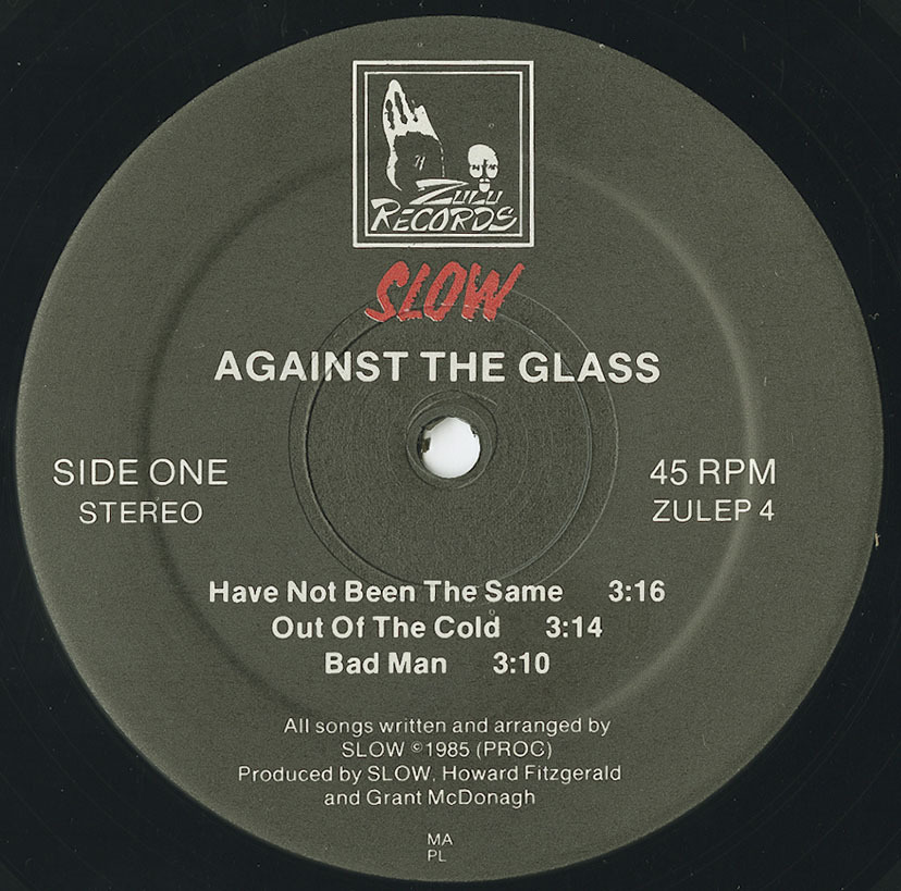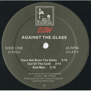 Vancouver's semi-legendary five-piece band Slow got their start in the early 1980's named Sifu. They changed their name to Slow and got signed to the west coast's independent label Zulu Records. In 1985 they released their first piece of product, a 12" single called "I Broke The Circle", and they gained almost immediate local stardom. Such was the interest generated that in 1986 they released a six-song EP, called Against The Glass, which garnered a strong positive response from fans and critics alike across the country.