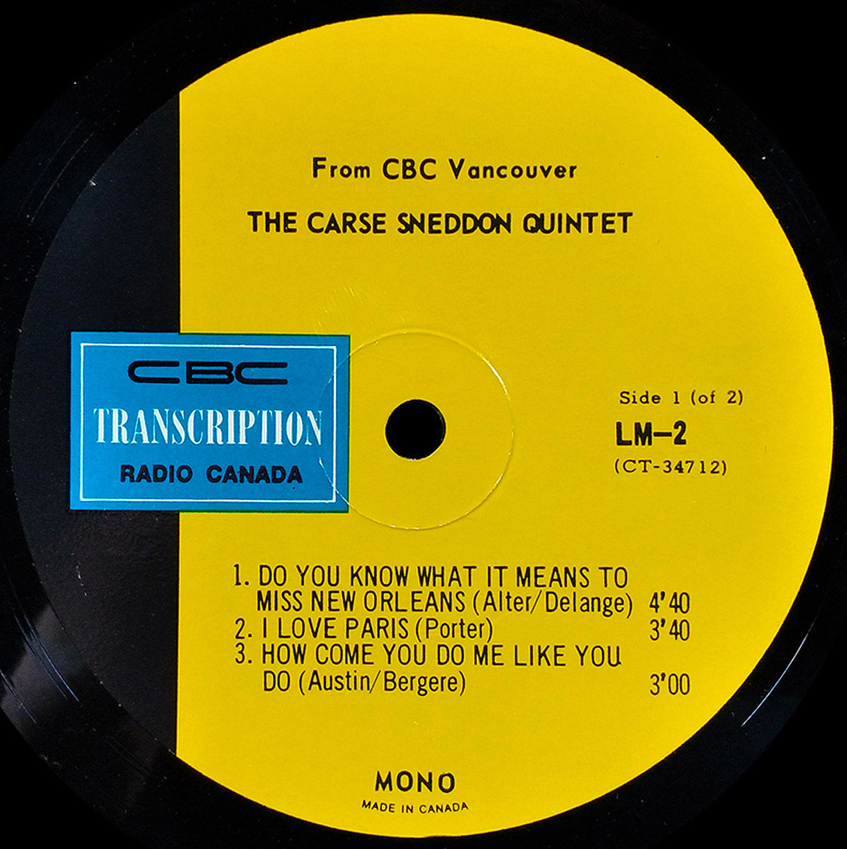 Jazz, CBC Radio Canada LM Series, 1960's, British Columbia