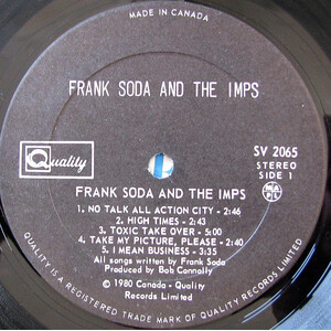 Frank Soda & The Imps released Soda Pop in 1980. "Take My Picture Please" made it as a single as well as 7" single, as did "Oversexed and Underfed." Other notable tracks included "Crazy Girls" and "Toxic Takeover." The band toured constantly, including opening for the likes of The Stampeders, and this album played a big part in the energy and excitement of their live shows.