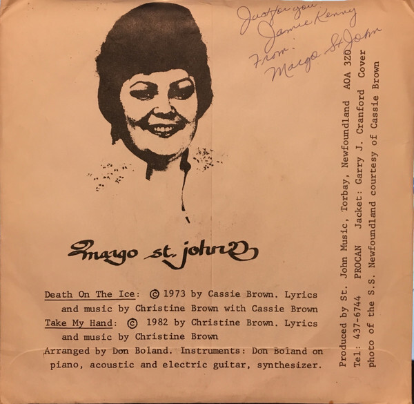 St. John, Margo - Death on the Ice: The Ballad of the S.S. Newfoundland Disaster b/w Take My Hand (picture sleeve)