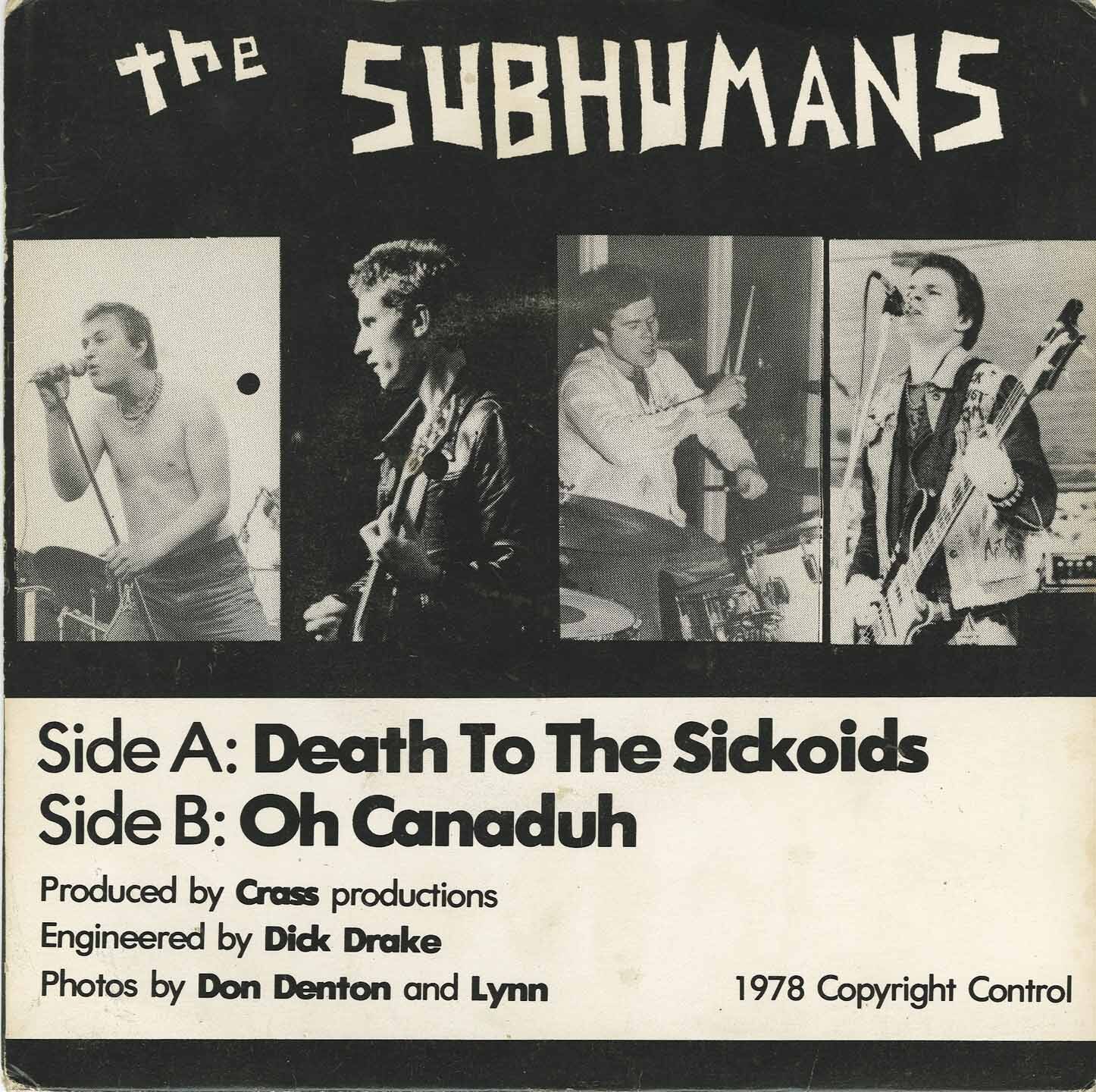 Released in 1978, The Subhumans' debut single, "Death to the Sickoids" b/w "Oh Canaduh," stands as a seminal artifact in Canadian punk history. Emerging from Vancouver's burgeoning punk scene, this 7-inch encapsulates the raw energy and political fervor that defined the era.