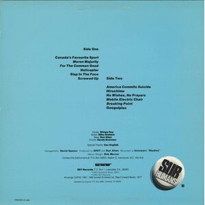 Early tracks like “Death to the Sickoids,” “Oh Canaduh,” and “Fuck You” laid bare the Subhumans’ ethos: anti-authoritarian, brutally self-aware, and delivered with volume and venom. Their shows were chaotic, often hilarious, sometimes confrontational — and always unforgettable. Their debut 7” single on their own label S1A00/S1B00, and their 12” Death Was Too Kind EP (produced by a young Bob Rock), became defining documents of early Canadian punk.