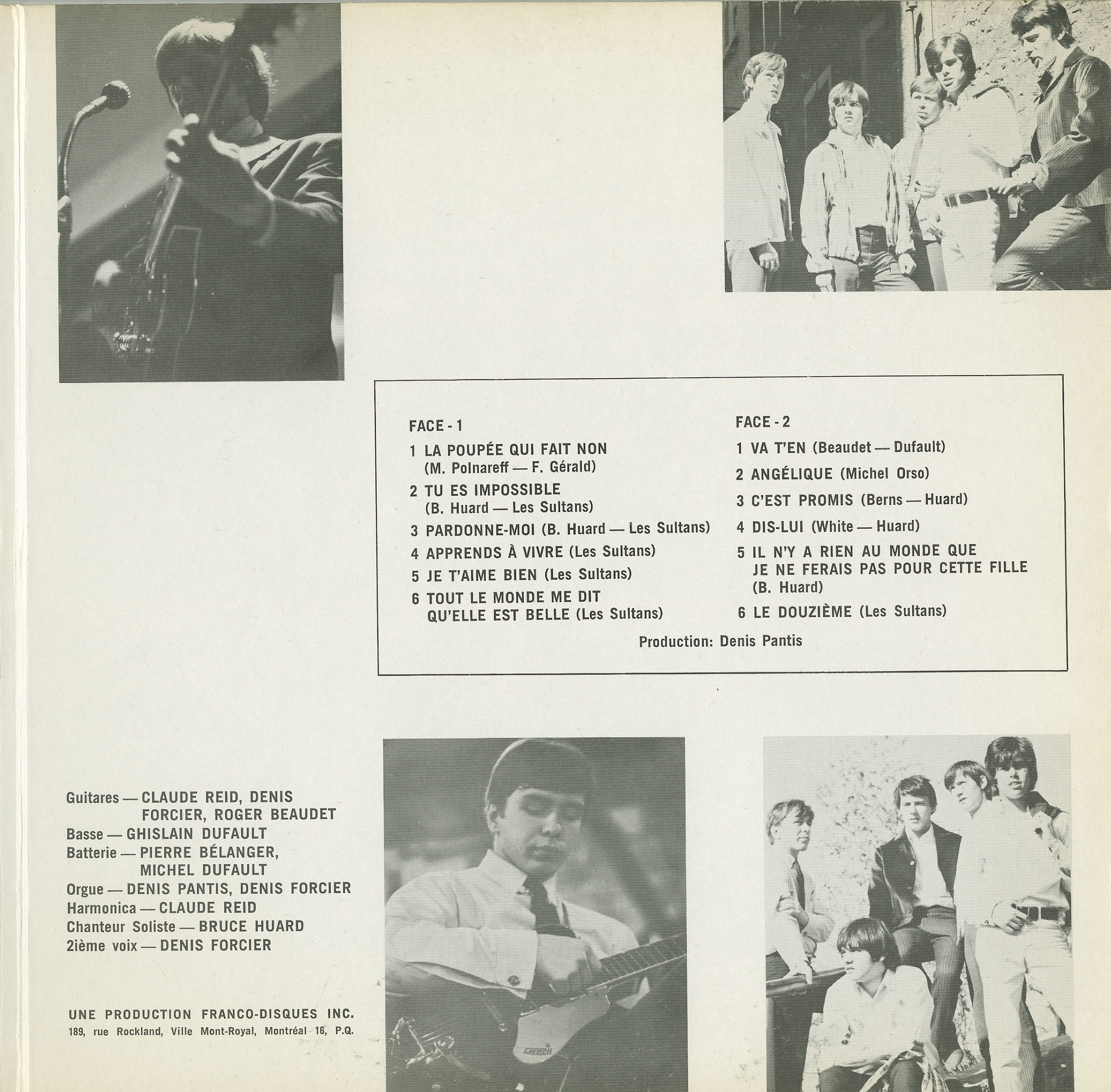 The roots of Les Sultans trace back to 1962, when teenage guitarist Claude Reid founded an instrumental combo called Les Dots with classmates Marcel Richard, André Dion, Gilles Henry, and drummer Michel Dufault. Originally emulating British instrumental acts like The Shadows, the group took a major turn in 1963 with the addition of vocalist Bruce Huard, whose charisma and vocal range would quickly become the band’s signature.