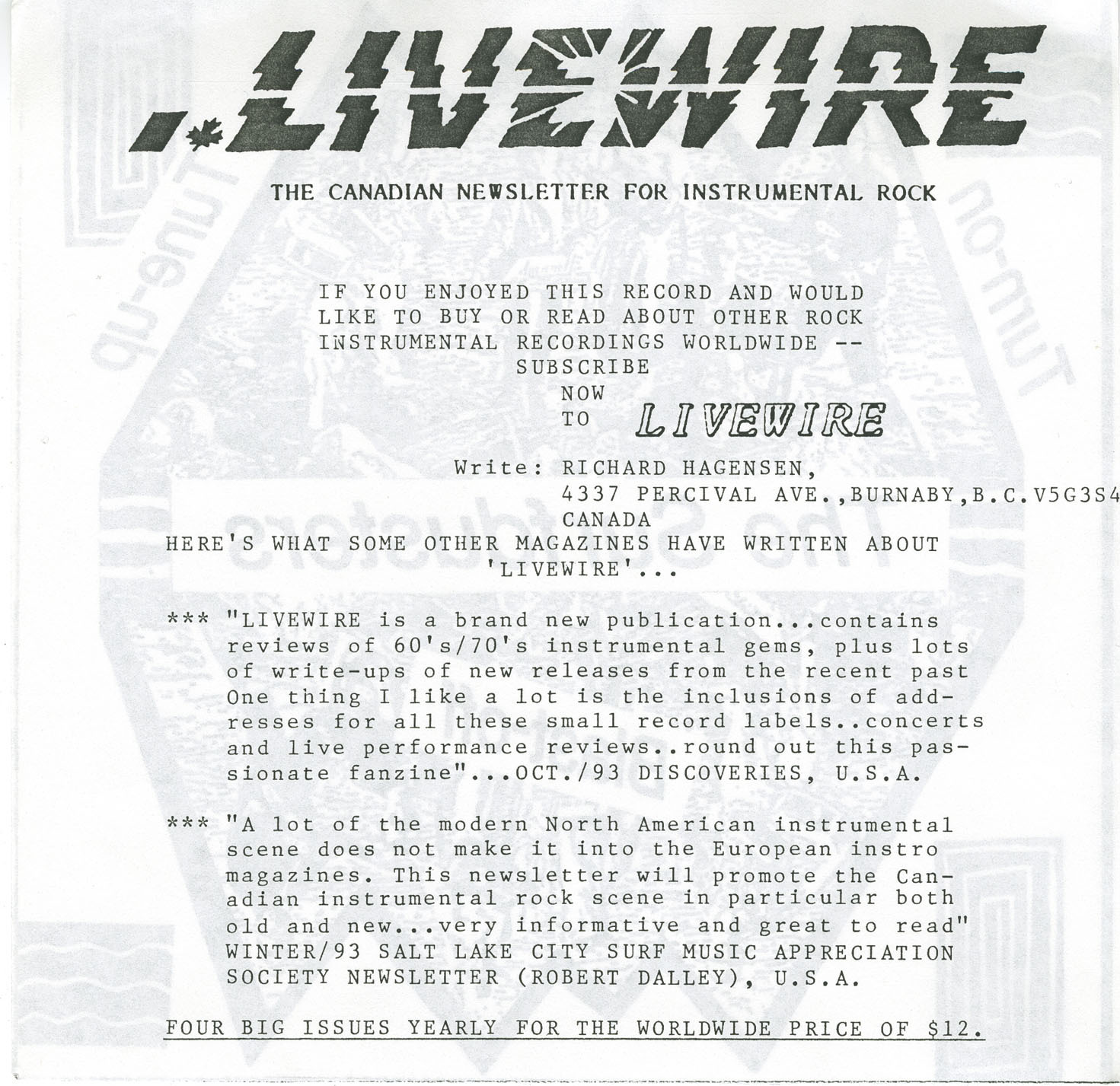 Special thanks to Harry & Hyacinth, Shadowy Men on a Shadowy Planet, Dave Vidal, Savage Republic, Not Just Another Music Gang, Jeff Isert, Richard Hughes, the Falcons, Dick Dale, Drew & Corrine