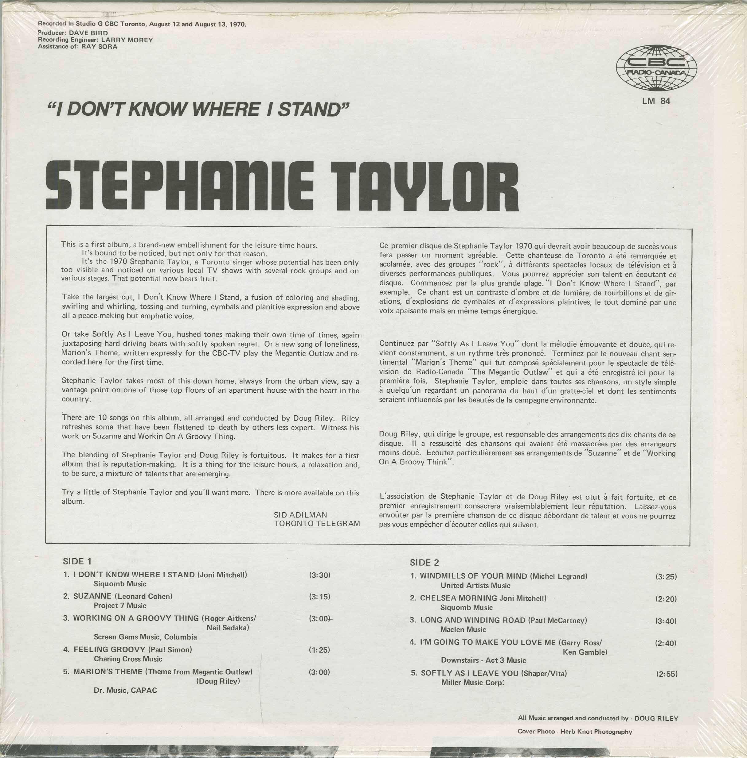 Taylor’s solo breakthrough came in 1970 with I Don’t Know Where I Stand, recorded at CBC’s Studio G and arranged by Doug Riley. A remarkable blend of soft pop, jazz, and vocal finesse, the album has since become a cult favorite. It features covers of artists like Joni Mitchell, Leonard Cohen, and Paul Simon, and includes the first recording of “Marion’s Theme” from the CBC drama The Megantic Outlaw. Her voice on the album earned praise for its rare combination of control, warmth, and emotional resonance.