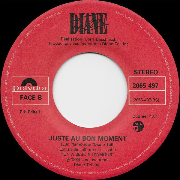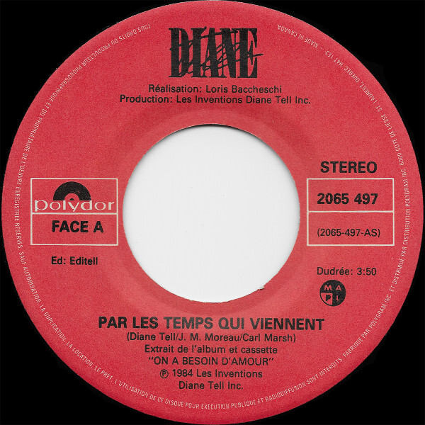 Tell, Diane - Par les temps qui viennent b/w Juste au bon moment (picture sleeve)