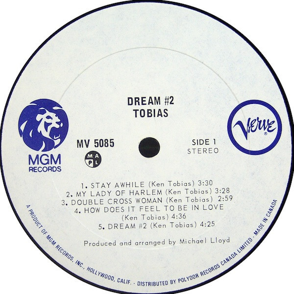 Tobias recorded his first solo album, Tobias/Dream No. 2, and the successful single "Dream No. 2" in 1972. His single, "I Just Want to Make Music," a statement of the songwriter's work ethic, became a Canadian top ten hit in 1973. Tobias recorded his next album, the country-rock The Magic's in the Music, in London, England for George Martin's AIR Studios in 1973. For Attic Records, Tobias next recorded the albums Every Bit of Love (1975), Siren Spell (1976), and Street Ballet (1977). The Ken Tobias Collection - So Far... So Good was issued in 1978; the 1984 recordings Ken Tobias - Friends (a children's record) and Gallery were his last albums.