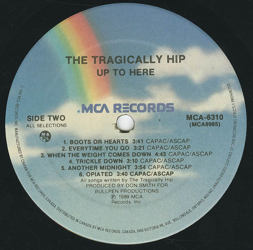 The Tragically Hip's debut album is kind of a wonderful thing to revisit. The band hits the ground running, a rush of mostly unwavering confidence and unfathomable greatness from the first track, "Blow at High Dough," through the fourth, "38 Years Old." But keep listening and hear the future unfold in the record's final seven tracks. The Hip was laying out a map, hinting at what was to come, even if the band didn't know it. The expanse of its ambition can be heard when the Hip deviates from its default blues-rock safe space: the slight countrified amp of "She Didn't Know," the twangy sass of "Boots and Hearts" and the chords on "Trickle Down," which will be heard again on Fully Completely, the band's 1992 breakthrough album.