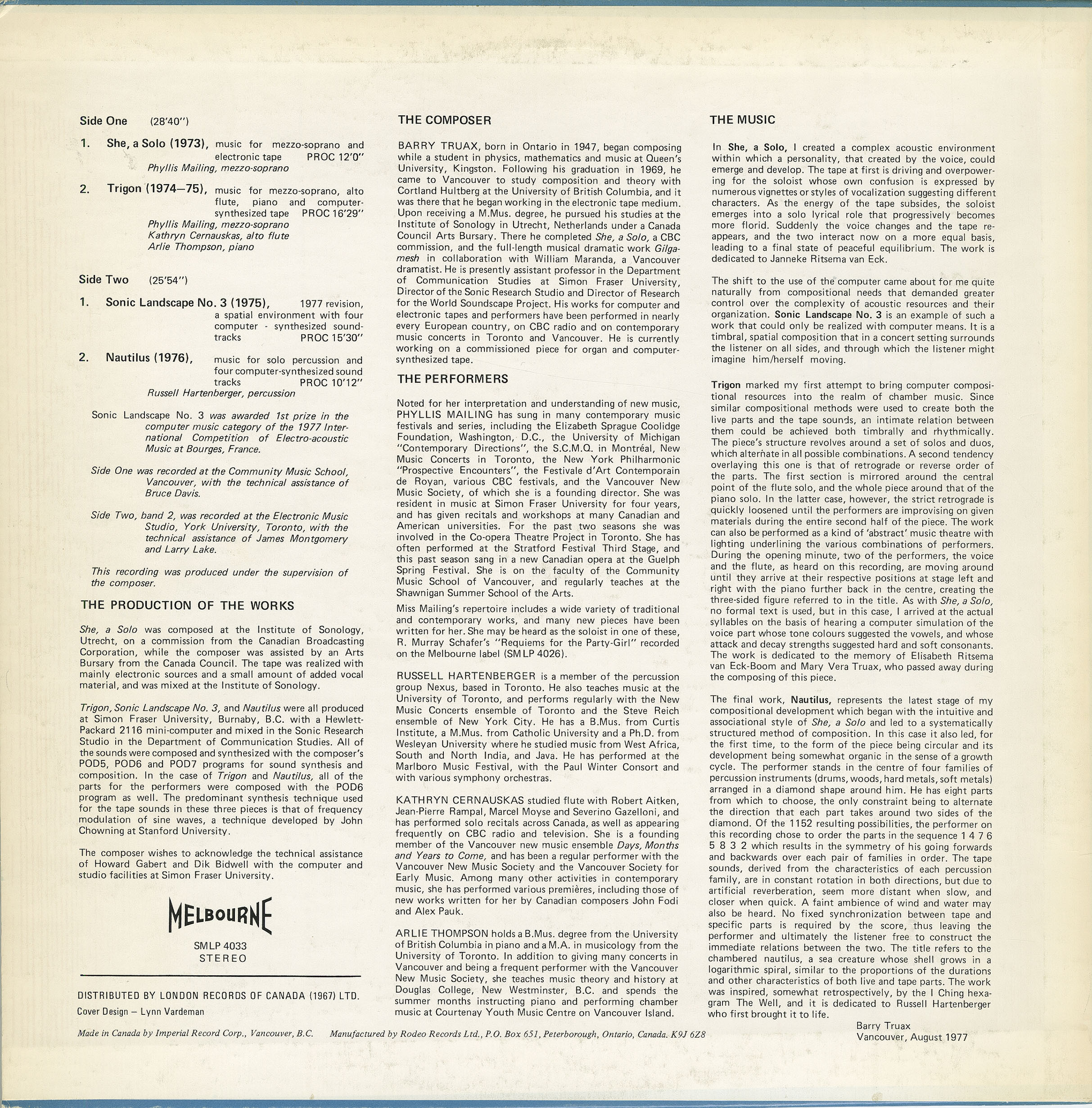 Label: Melbourne SMLP 4033