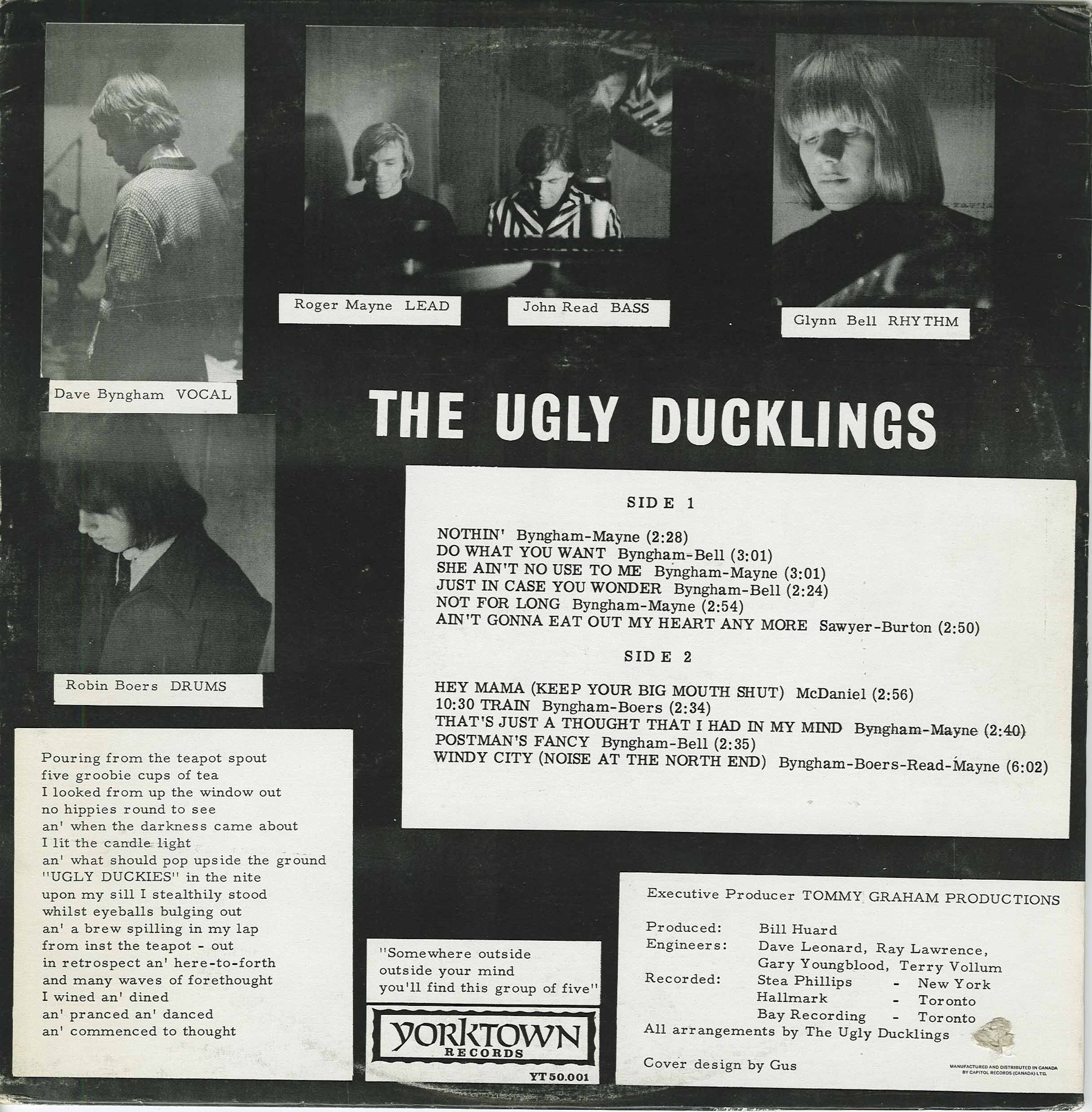 Nineteen sixty-six was the year pop's voice cracked, when its squeaky clean Beatles complexion broke out in the pimply scruff of garage rock all over North America. From the Chocolate Watchband out in San Jose and the 13th Floor Elevators in Texas to the Unrelated Segments in Detroit and the Remains in Boston, a plethora of scrawny kids fumbled with chords on their used Telecasters while aping Mick's already affected snarls. Canada had its share of garage/psych bands whose discs now orbit the stratosphere in collectors' values. And whereas Montreal's the Haunted can lay claim to both the coolest single (the local smash '1-2-5') and the priciest vinyl (four figures for their 1967 album), the Ugly Ducklings emerge as the better of the two, scoring hits on Toronto's legendary CHUM-AM radio station with their debut platter, 'Nothin', eventually reaching number 18 in 1966, and 'Gaslight', peaking even higher the following year.