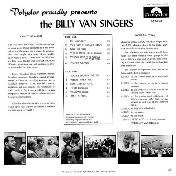 The Billy Van Singers were also featured on the compilations: CBC Song Market and Fall In Fashion Musical. The Laurie Bower Singers were also involved in this recording.