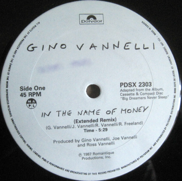 Vannelli, Gino - In the Name of Money (Extended Remix) b/w In the Name of Money (Remix) / King for a Day