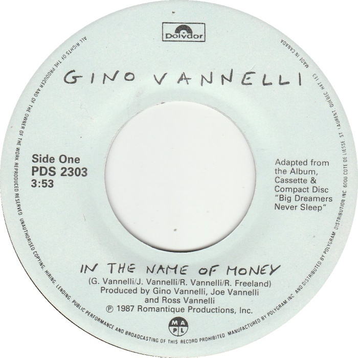 Vannelli, Gino - In the Name of Money b/w King for a Day (picture sleeve)