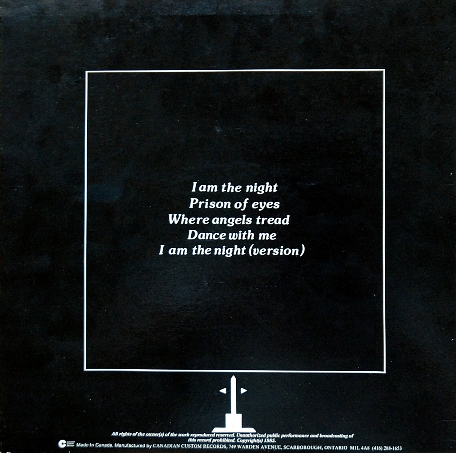 Recorded and mixed at ‘Phase One’ Studios, Toronto, in the Fall of ’85