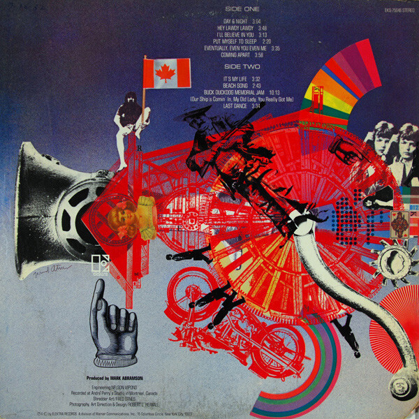 The loose nature of the project spilled over to the sessions themselves, which were graced by some very famous guests who didn't make it onto the album credits. "We were there for about six weeks, and Monty Python was doing their first North American tour," remembers Segarini. "They were in town for like two weeks. Because we were a big deal in Montreal at the time, they showed up in the studio one night -- John Cleese, Eric Idle, Neil Innes [the ex-Bonzo Dog Band member who toured as part of the Python's stage show], and Michael Palin. Cleese came by a few times, he was always really fun. But Eric was there all the time. And because they're hanging out, everybody starts hanging out. Frank Marino from Mahogany Rush, whose first album I produced. Brian Greenway from Mashmakhan, who I eventually formed a band with; he's been in April Wine for the last 25 years. Frankie Hart, a singer in a well-known local band, sang the backup vocals on a couple of tunes.
