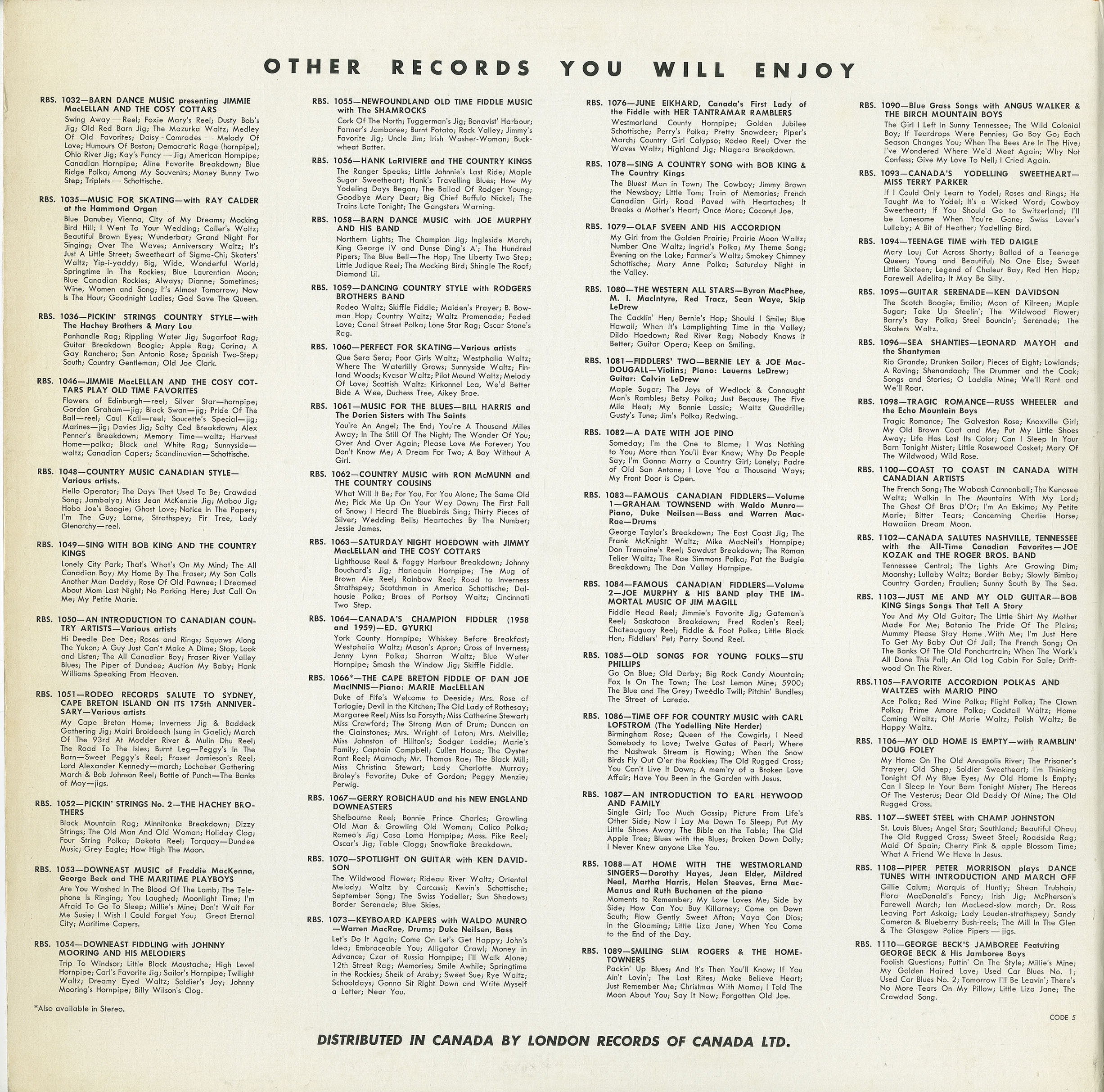 Cape Breton, Nova Scotia, Country & Western, 1960's, Banff Rodeo Records