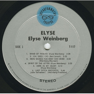 Elyse grew up and got her start performing in Toronto alongside friends like Young and Joni Mitchell. She later moved to Los Angeles where she recorded "Elyse", and has since lived in London, New Mexico, and Ashland, Oregon where she currently lives. She still writes and plans to record an album of new material in the near future. I hope you all enjoy this magical and wonderful album, a true lost classic, and one of the best albums of the 1960's or any other time!