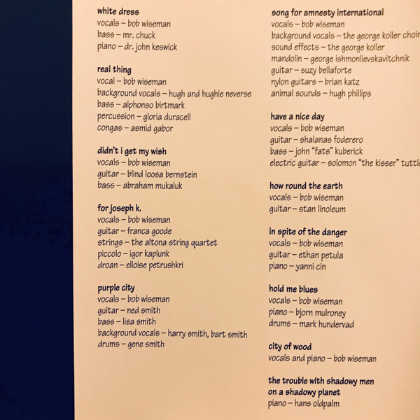 Wiseman's first solo album post-Blue Rodeo and Edie Brickell finally marries his unusual melodies and quirky lyrical concerns with unexpectedly beautiful results. From the opening Dylan-esque lilt of "White Dress" through the chilling "Song For Amnesty International" to the schizoid title track, Dame Julia Nesbelch's poetic production guides Wiseman's acid-tinged sketchings into stunningly evocative tracks, combining folk, jazz, rock, and blues into a seamless collection. The political attacks are still present ("Have A Nice Day" skewers former Western Canada Concept Party leader Douglas Christie), but the absolute highlight is the unforgettably lyrical "For Joseph K.", a haunting eulogy to a great friend, marked by minimalist guitar picking that renders Wiseman's tristesse genuinely devastating. Encompassing rape, mass murder, third world torture, the rewriting of history, and a helpless world in which one can only struggle to stay afloat, City Of Wood is that rarest of things: an emotional powerhouse that actually conveys the angst, sorrow, and love at war within its artist. Truly remarkable.