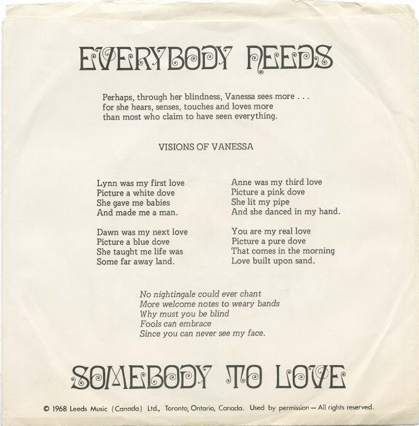 Witness Inc. - Visions of Vanessa b/w Another Side Of Her (picture sleeve)