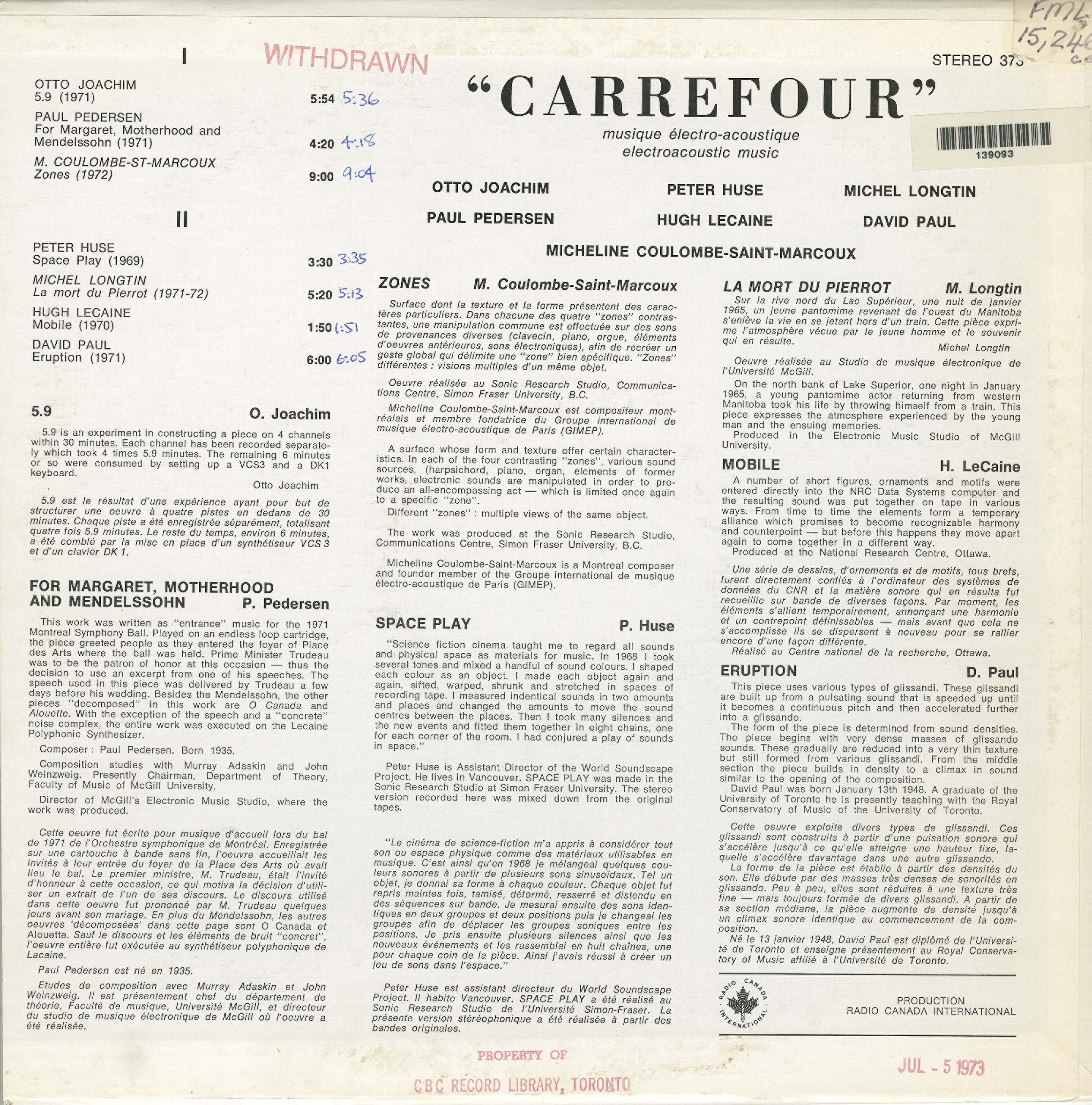 Label: Radio Canada International RCI 373