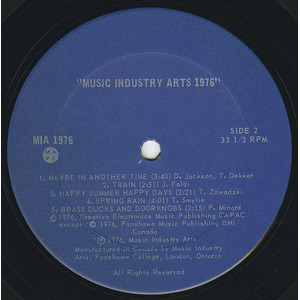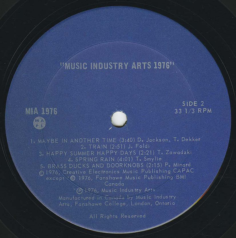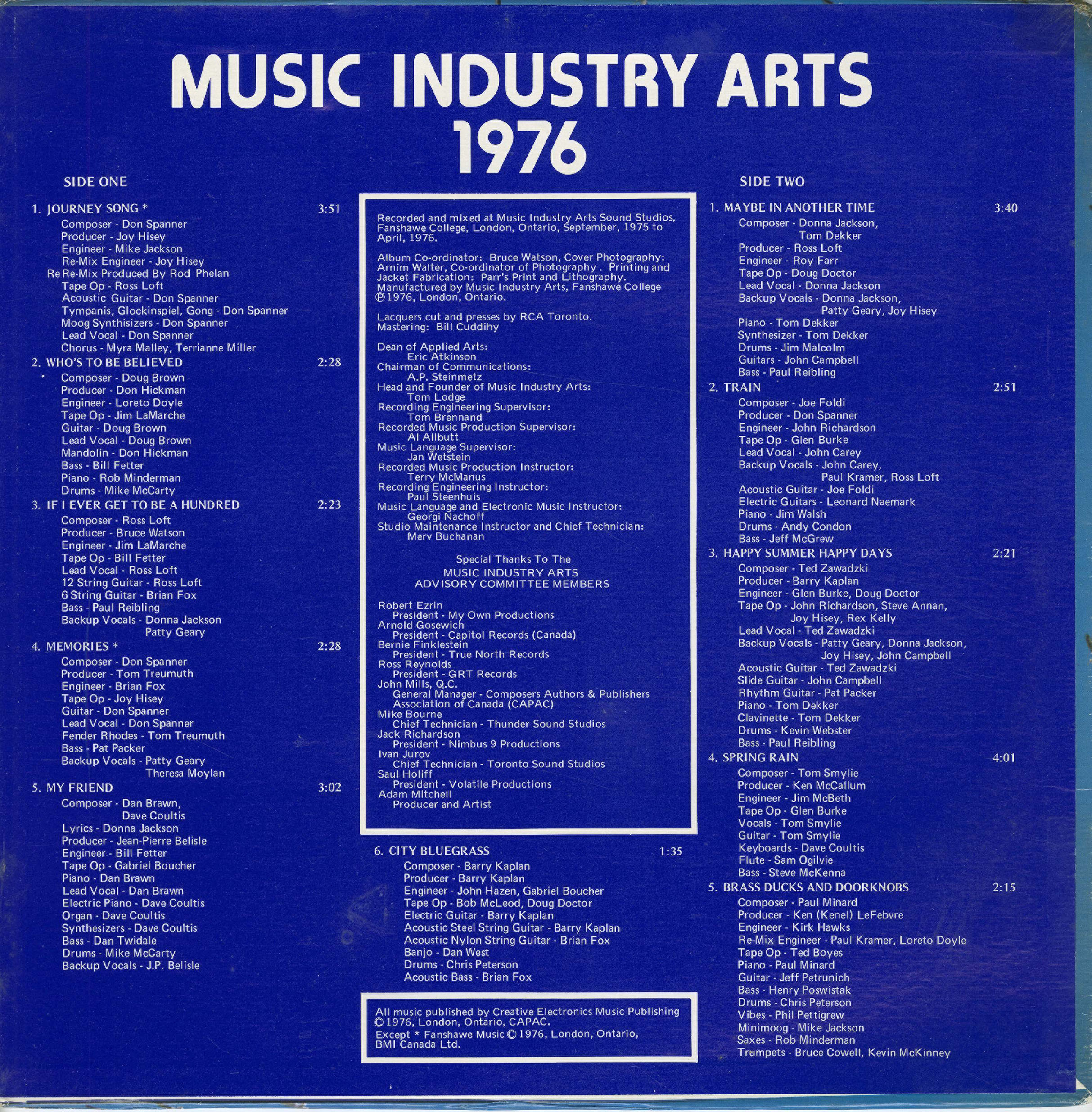 Recorded and mixed at Music Industry Arts Sound Studios, Fanshawe College, London, Ontario, September, 1975 to April, 1976.