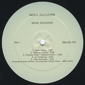 Noah Zacharin is one of the best songwriters this country has produced. He has recorded nine studio albums, starting with his first in 1982 "The Green Album". I recently asked him what a few of his favourite songs were and he commented: "'Clear as the Air' was a musical leap. Considerable jazz and funk vibes introduced suddenly, to my predominantly folk and blues thing."