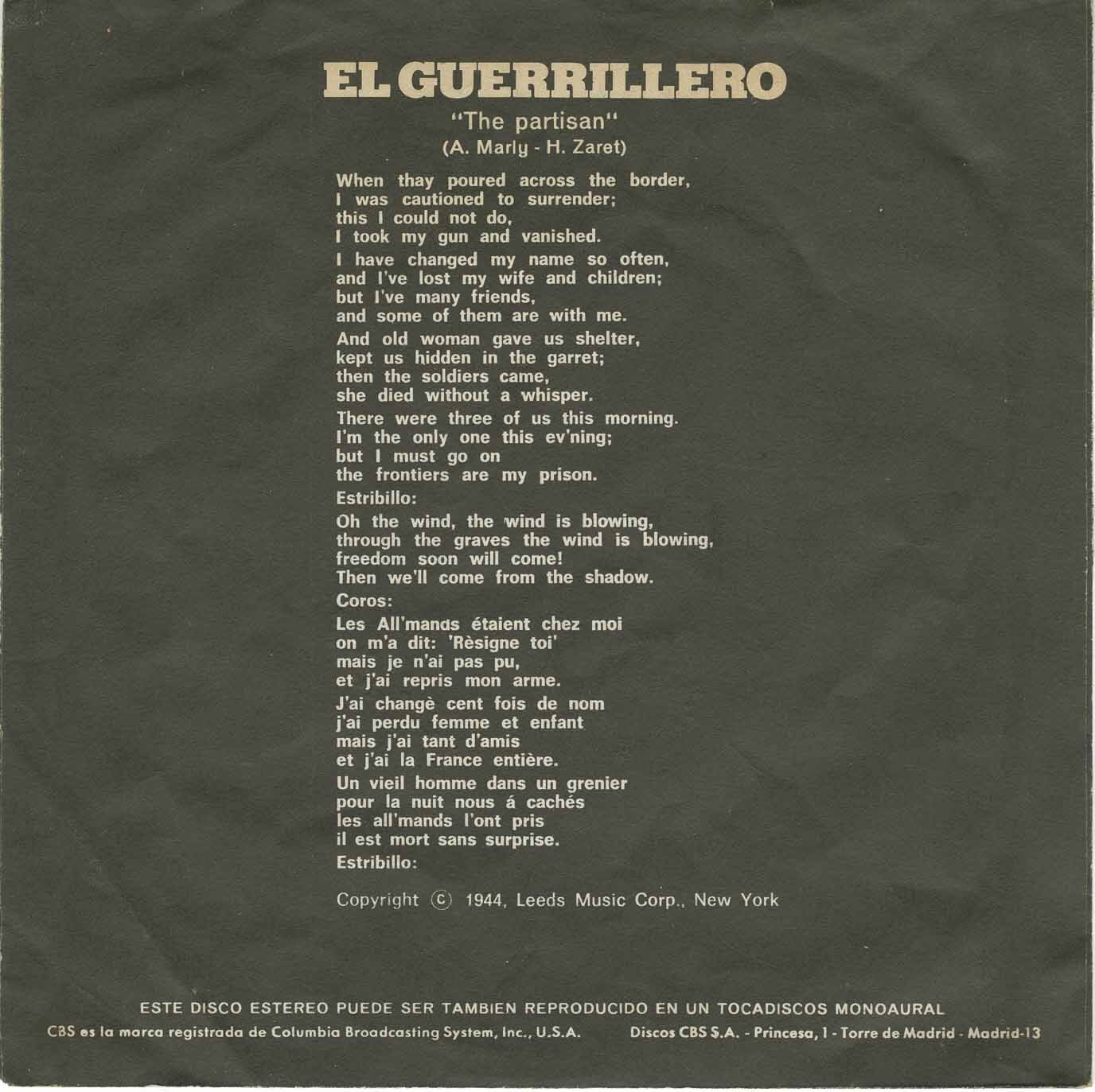 Leonard Cohen - Suzanne b/w The Partisan insert side 2