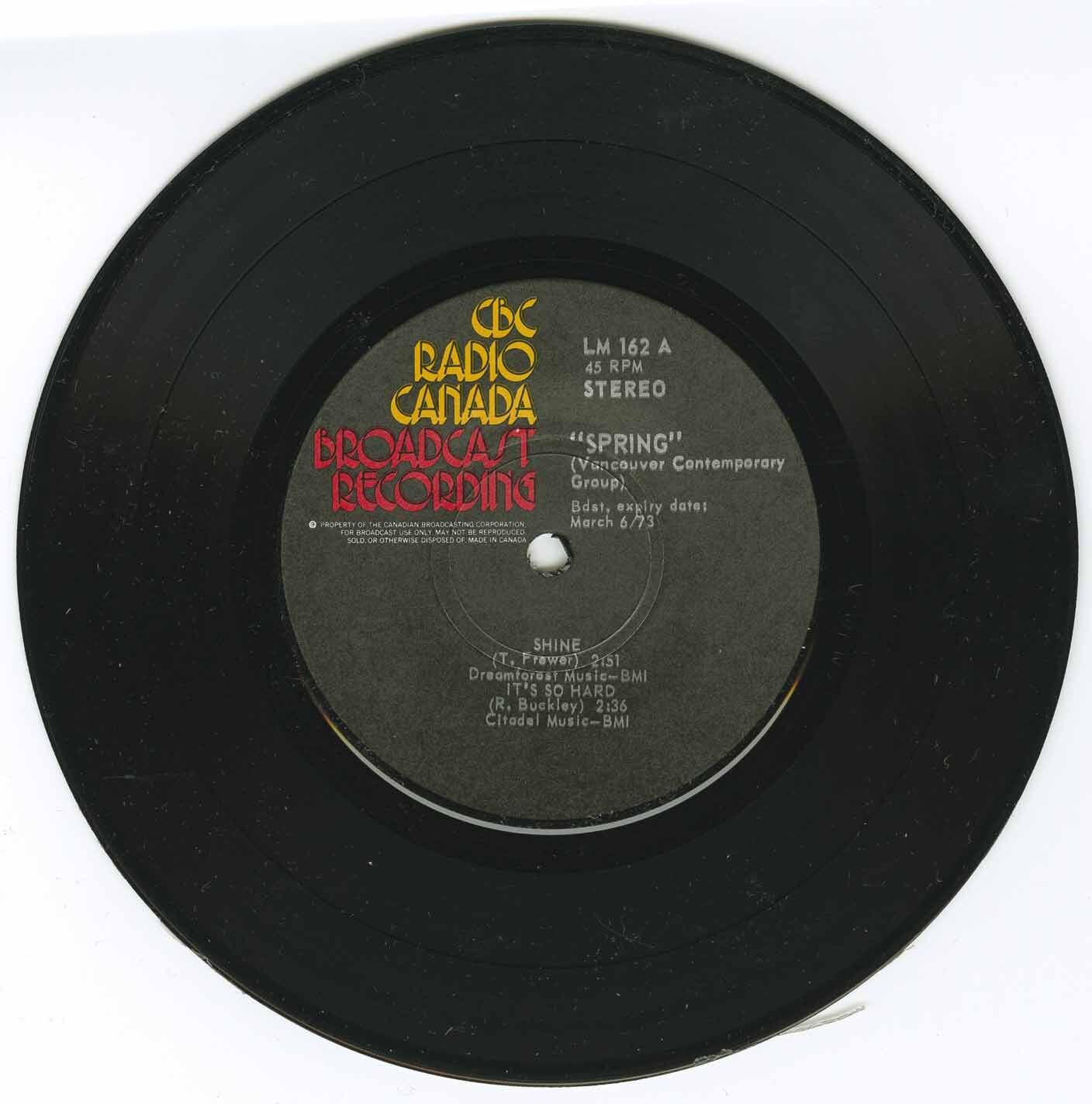 Led by smooth-as-silk guitarist Terry Frewer, this Vancouver, British Columbia quartet scored a huge local hit in 1971 with "A Country Boy Named Willy" b/w "Pressed Ham," released by London. Other group members were Bob Buckley (vocals, keyboard, sax, woodwinds), Pete McKinnon (bass), and Kat Hendrikse (drums). Spring's first recording, "Bring Yourself Down to Earth, Lovin' Blues Baby," was described by Vancouver DJ Michael Willmore as "a tasty funk-rock number." It appeared on the various-artists charity compilation Cool Aid Benefit Album (Arthfor Special Products 4001D; 1969). "As Feelings Go," the group's debut single (Coast, 1970), was felt by all concerned to be an inferior remake. (The highly regarded first master was lost when someone hit the wrong button during a replay session.) Promo copies of Spring's second 45, "It's a New Day" (Coast, 1971), went out, but the single was withdrawn due to general disinterest. A rare-as-hens'-teeth EP was cut for CBC Radio Canada, but it was "A Country Boy Named Willy" that endeared Spring to fans in the Canadian West. There is something of the Hollies' "Long Cool Woman in a Black Dress" in "Willy," with hints of the Small Faces and the countrified Byrds as well. Frewer's crisp, clean style is definitely to be admired. Progressive musicians, Spring actually performed in concert with the Vancouver Symphony Orchestra; their show was entitled Son of Zonk. The wider recognition the band craved never materialized. Failing to secure a hoped-for album deal, Spring -- disenchanted with drunken audiences and harrowing winter touring conditions -- called it quits. "As Feelings Go" and "It's a New Day" resurfaced on the History of Vancouver Rock, Vol. 3 (Vancouver Record Collectors' Association, 1983), while "A Country Boy Named Willy" was reissued on the History of Vancouver Rock, Vol. 4 (Vancouver Record Collectors' Association, 1991).