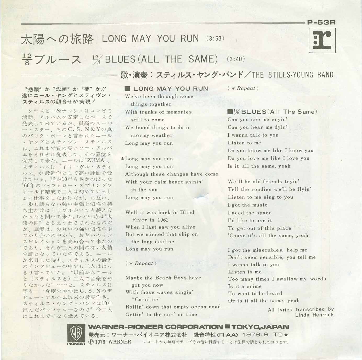 Stills Young Band - Long May You Run b/w 12-8 Blues (All the Same) (picture sleeve)