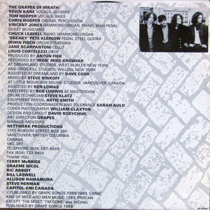 Now And Again is a finely-textured, multi-layered album with lyrics of yearning ("Stay") and regret ("...But I Guess We'll Never Know") counterbalanced musically by light and spaces. Songs laced with realization ("The Most") and recollection ("Hiding") are wrapped in delicate, cascading harmonies. Recorded in Woodstock, NY, during the early months of 1989, Now And Again finds The Grapes of Wrath displaying a wide variety of moods -- from the orchestrated subtleties of "All The Things I Wasn't" to the electric distortion of "Do You Want To Tell Me".