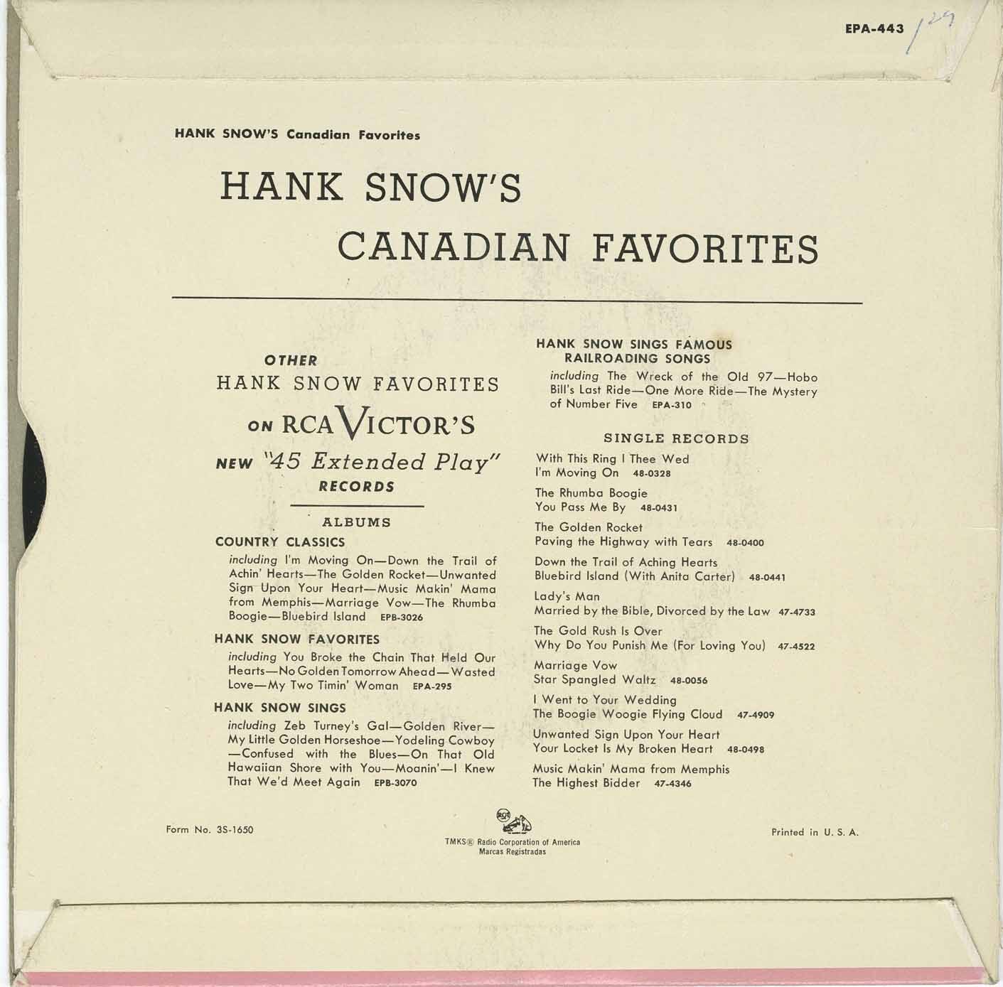 Snow, Hank - Canadian Favorites (picture sleeve)