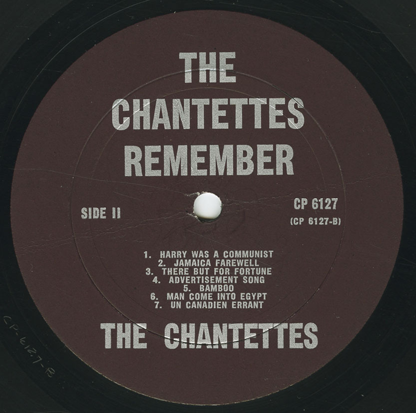 The Chantettes like to remember: their first engagement at the G.C.V.I. Christmas assembly, singing for the Canadian Schoolboy Curlers at their Championship banquets, eating innumerable boxes of chocolates, travelling to engagements crammed into a Morris Mini Minor, their practices, and many excursions to the Pizza Palace and the Chinese laundry.