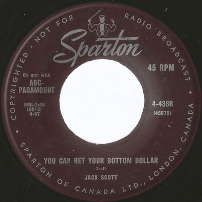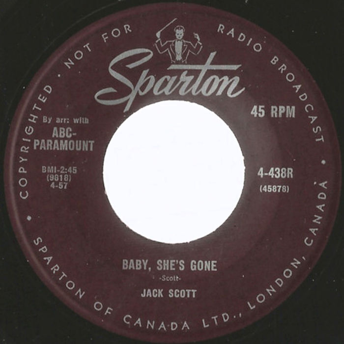 Scott, Jack (Giovanni Scafone Jr.) - Baby, She's Gone b/w You Can Bet Your Bottom Dollar