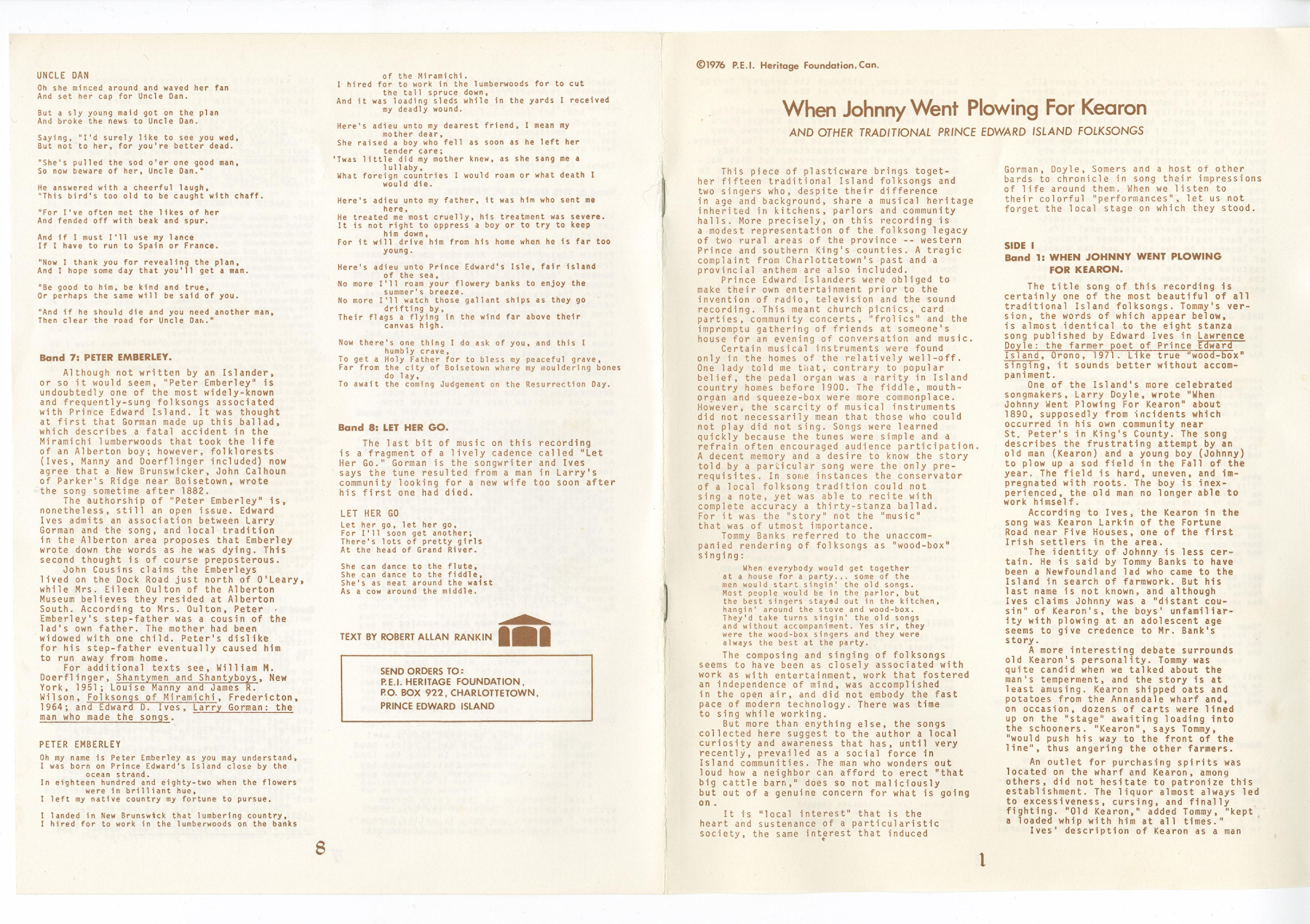 Label: Prince Edward Island Heritage Foundation MS-11941