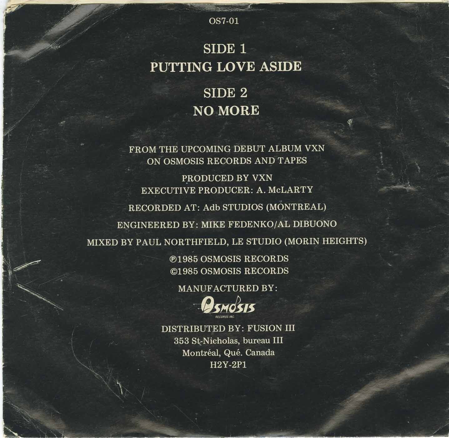 VXN - Putting Love Aside b/w No More (picture sleeve)
